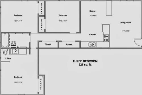 3 Bedroom, 1 Bath - Floorplan 1 Apartment Unit: 0503Apartment Model: 3 Bedroom, 1 Bath$1,2003 Bedroom, 1 Bath, 927 sq ftAvailable NowApartment Unit: 0604Apartment Model: 3 Bedroom, 1 Bath$1,2003 Bedroom, 1 Bath, 927 sq ftAvailable NowApartment Unit: 0611Apartment Model: 3 Bedroom, 1 Bath$1,2003 Bedroom, 1 Bath, 927 sq ftAvailable Now4 Bedrooms