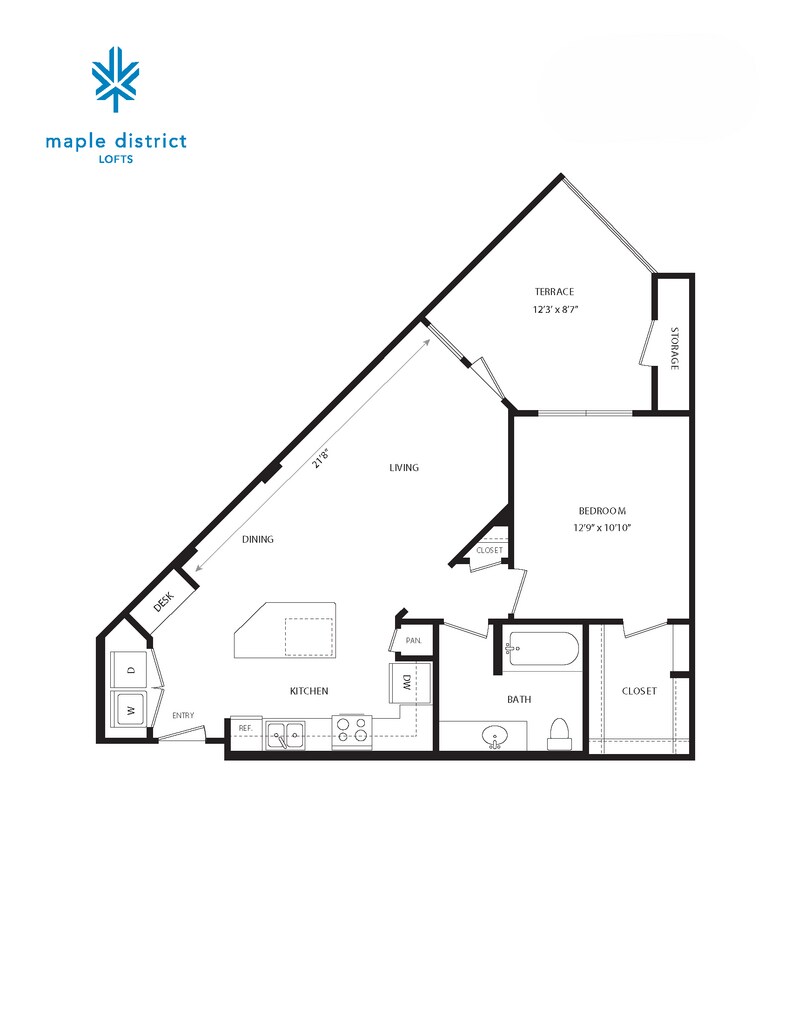 Maple District Lofts offers Studio to 2 Bedroom apartments starting from $1,303 and having 580–1,869 sq ft. Here is the current pricing and availability: