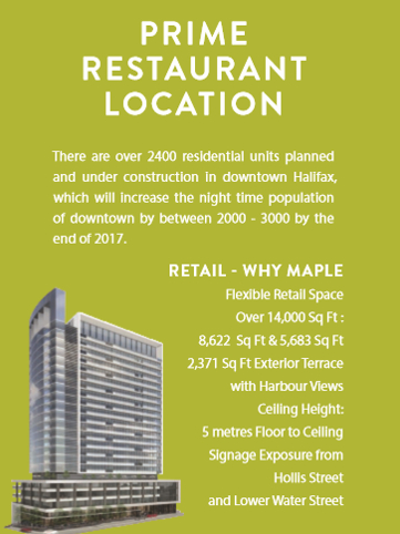 At Maple in Halifax, NS, experience stylish living. The location of this community is in Halifax at 1583 Hollis St in the 0 area. From location to floorplan options, the leasing staff is ready to help you in finding the perfect new home. Stop by to schedule a tour.