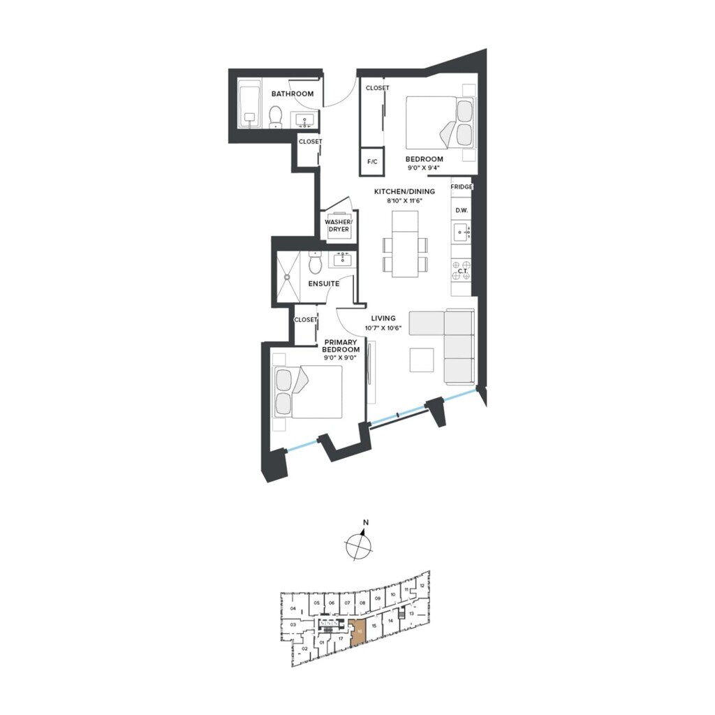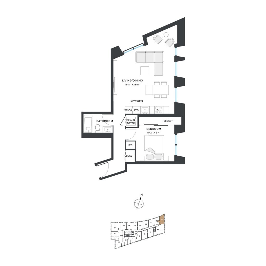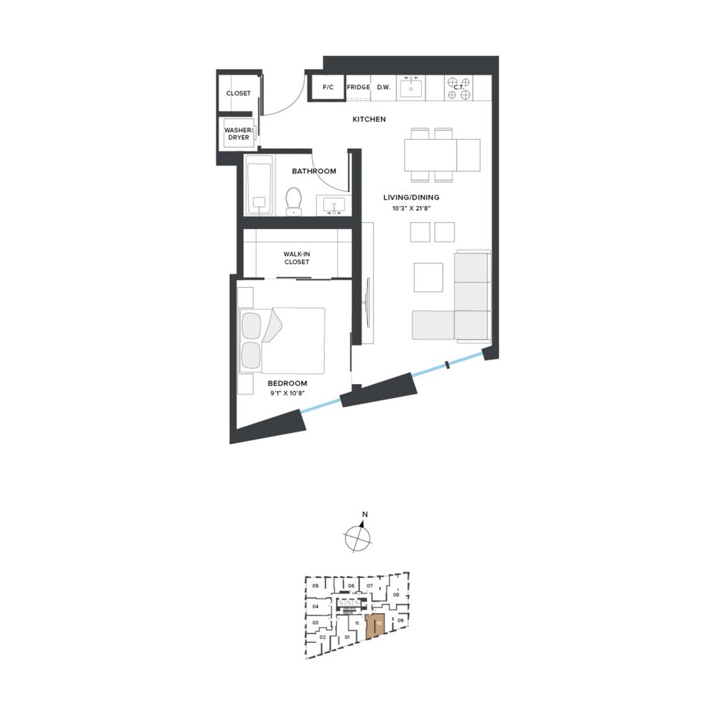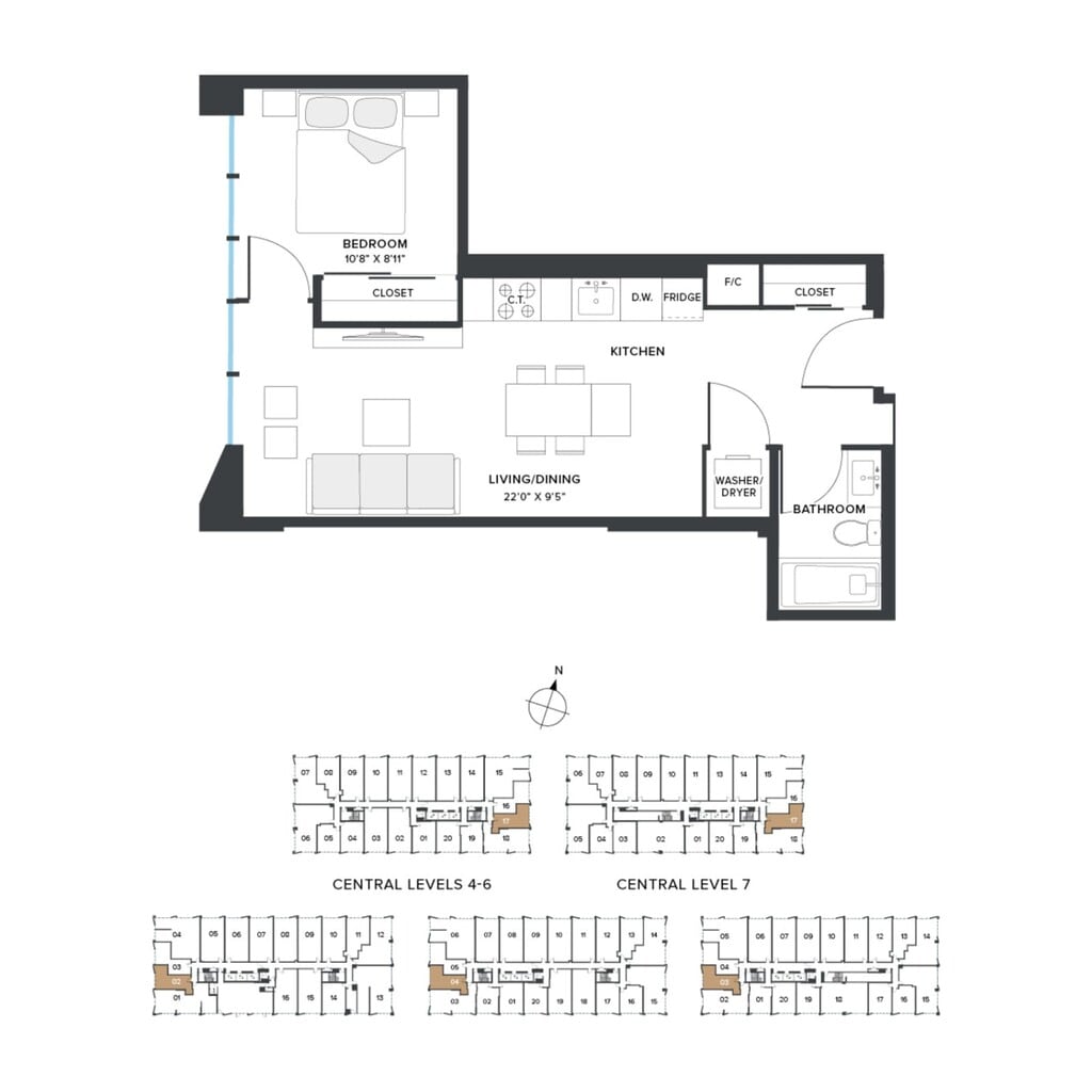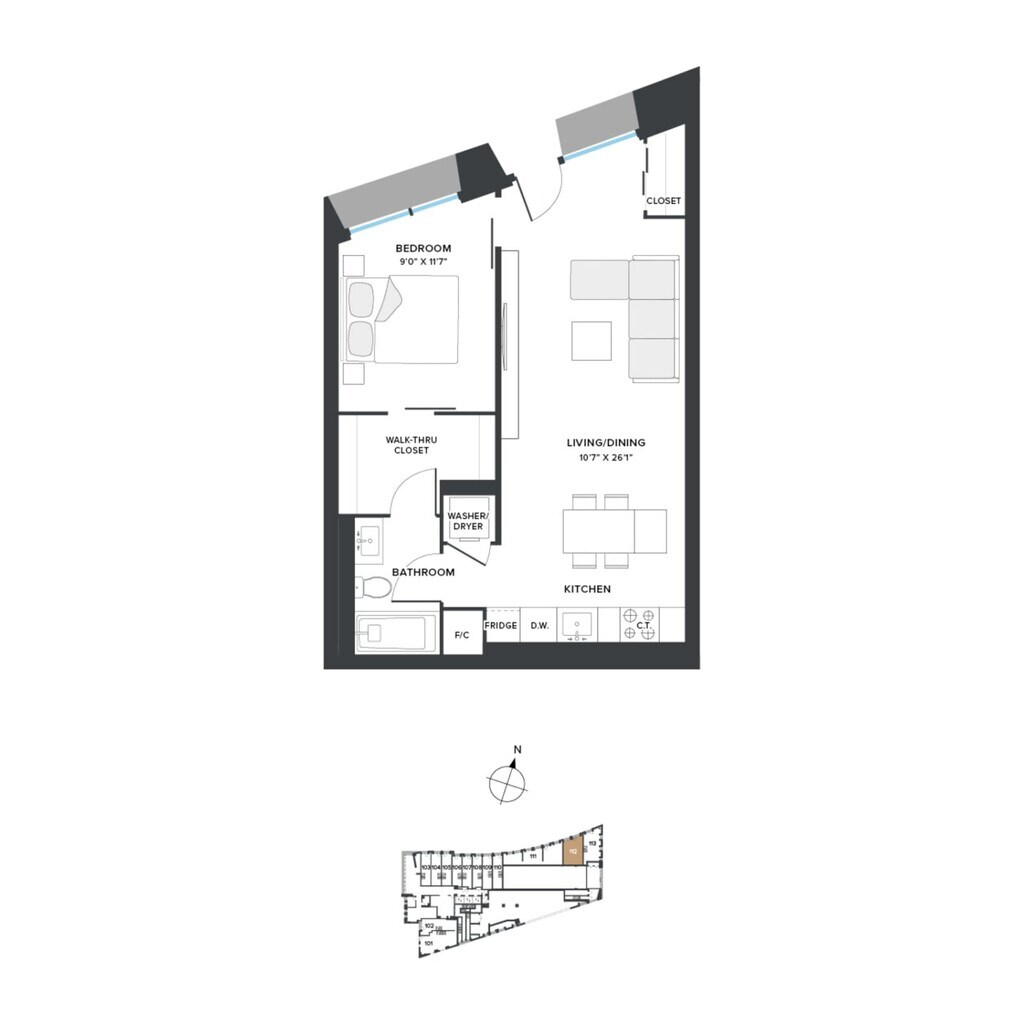 A13 - Floorplan 1 Apartment Unit: E2210Apartment Model: A13From $2,5931 Bedroom, 1 Bath, 556 sq ftAvailable NowFloorplan A22