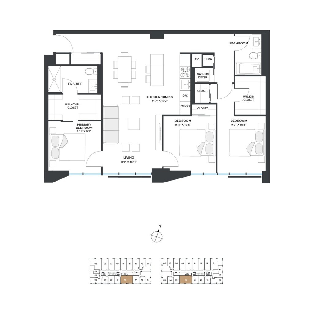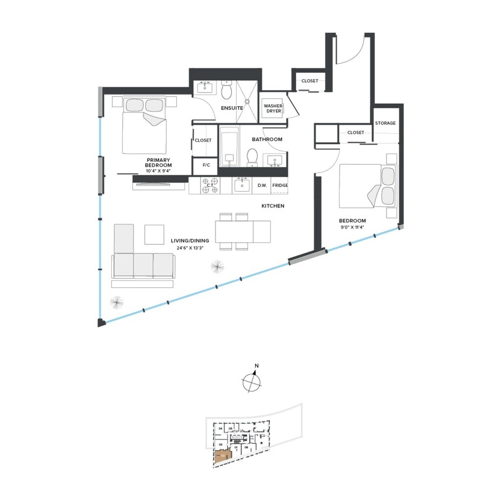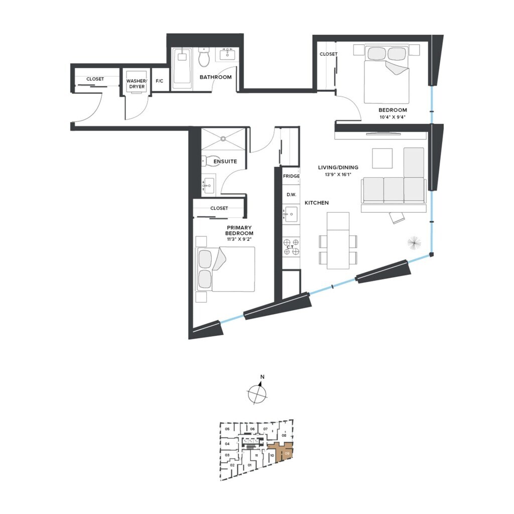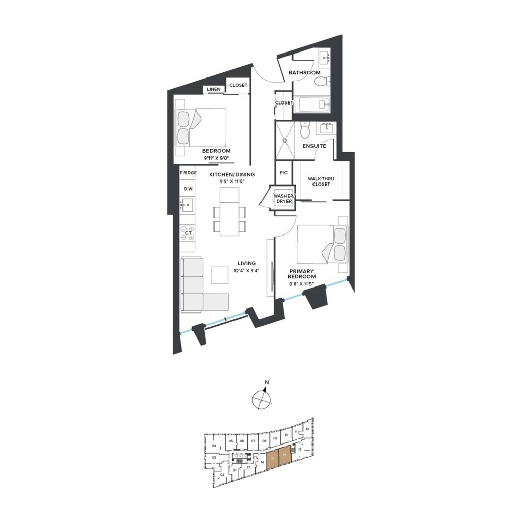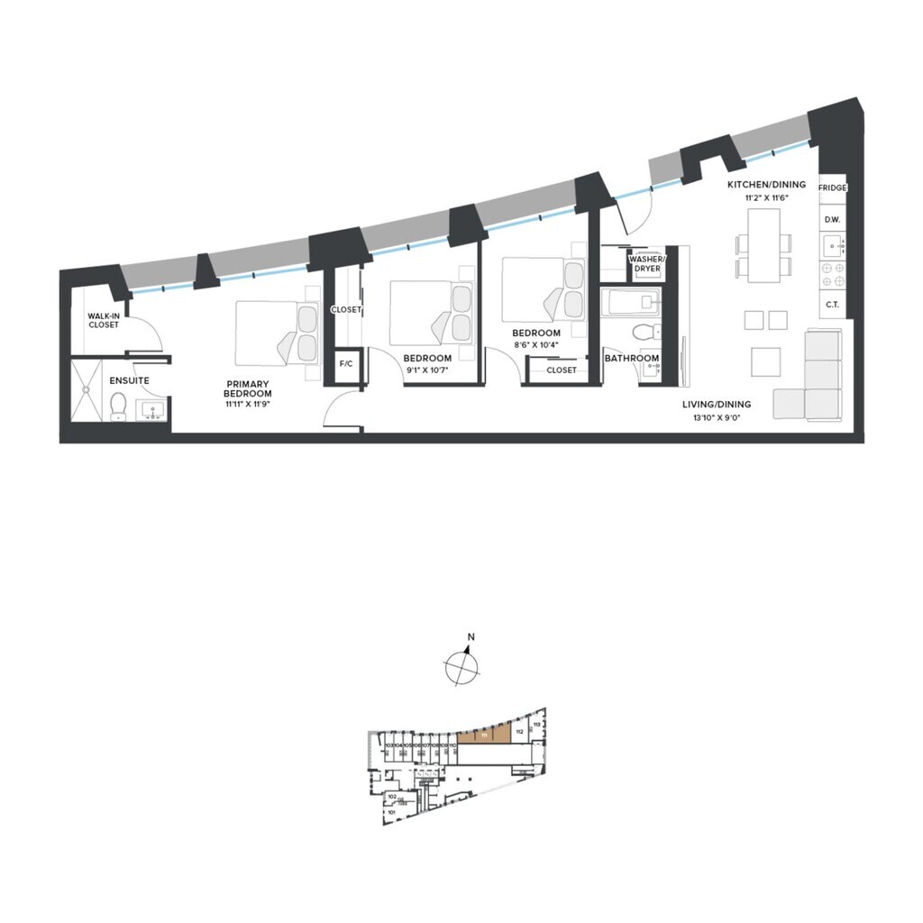 A13 - Floorplan 1 Apartment Unit: E2210Apartment Model: A13From $2,5931 Bedroom, 1 Bath, 556 sq ftAvailable NowFloorplan A22