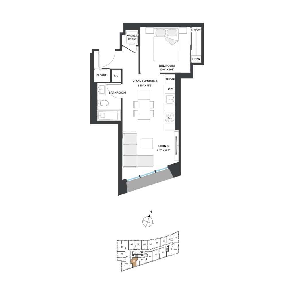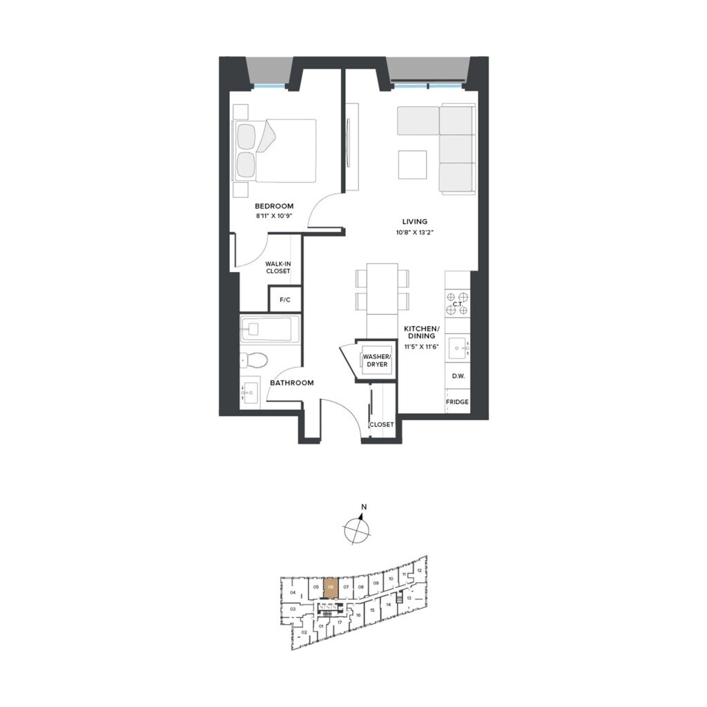 A8 - Floorplan 1 Apartment Unit: E0906Apartment Model: A8From $2,3331 Bedroom, 1 Bath, 525 sq ftAvailable NowApartment Unit: E1006Apartment Model: A8From $2,3981 Bedroom, 1 Bath, 525 sq ftAvailable NowApartment Unit: E1106Apartment Model: A8From $2,3531 Bedroom, 1 Bath, 525 sq ftAvailable NowFloorplan A16