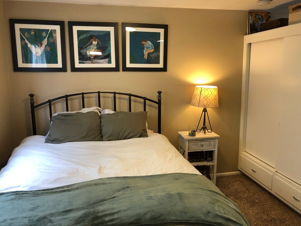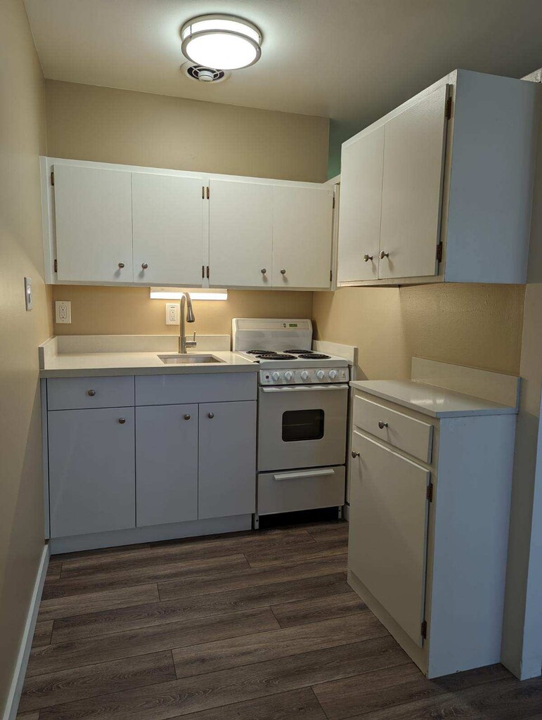 Remodeled 1 bedroom apartment on the first floor with 3 large windows, 1 in the living-room and 2 in the bedroom, that provide lots of natural light and ventilation. Kitchen has quartz counter-tops, a stainless-steel sink, range and refrigerator. The bedroom will fit a queen bed with nightstands or other furniture, and has a large built-in closet with 6 large drawers, a shirt hanging rod compartment and a large hanging rod closet. Other features include a soaking tub with a tiled shower enclosure and wood flooring throughout. Laundry facilities are in the basement along with additional storage, which is included in the rent. Parking is on street, with easy access to freeway, or you may take the bus from one of 4 bus stops within blocks of your new apartment. Maple Leaf on the Lake is located on the northeast side of Green Lake on a quiet tree-lined street, only 2 residential blocks from the lake. The neighborhood offers a variety of yoga studios, sports shops, restaurants, coffee shops, banking, shopping, and other services.