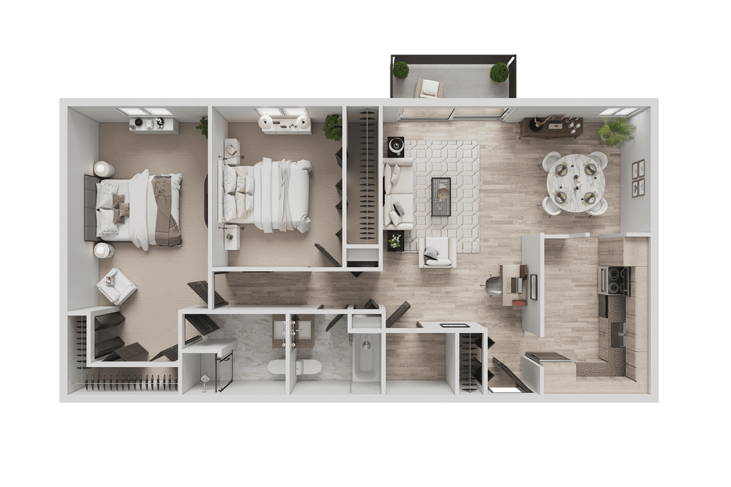 2BD x 1BA Upgraded - Floorplan 2 Apartment Unit: 6-272Apartment Model: 2BD x 1BA UpgradedFrom $1,5892 Bedroom, 1 Bath, 1050 sq ftAvailable May 6, 20262BD x 2BA Upgraded