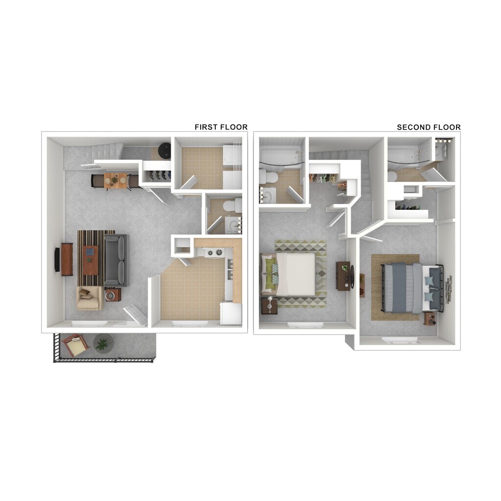 2 Beds, 2.5 Baths, 1066 sq ftAvailable NowModel Gallery