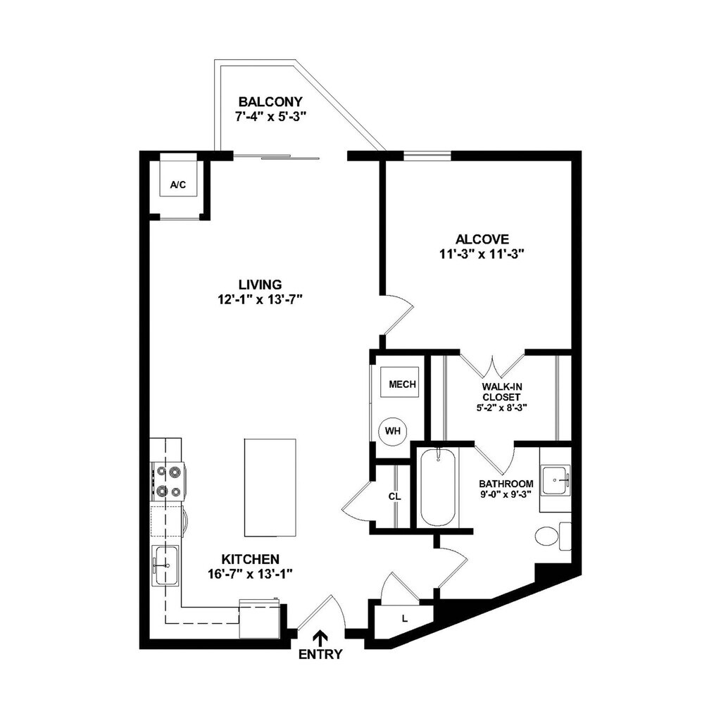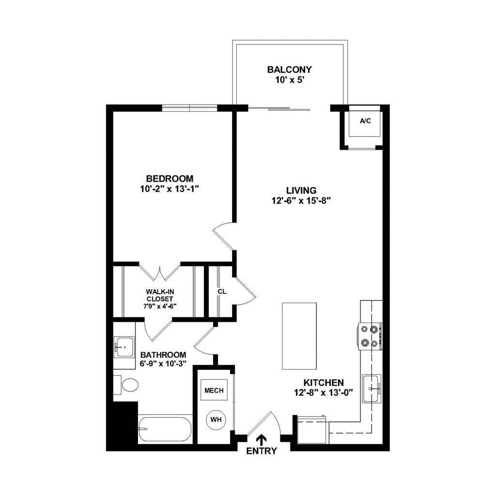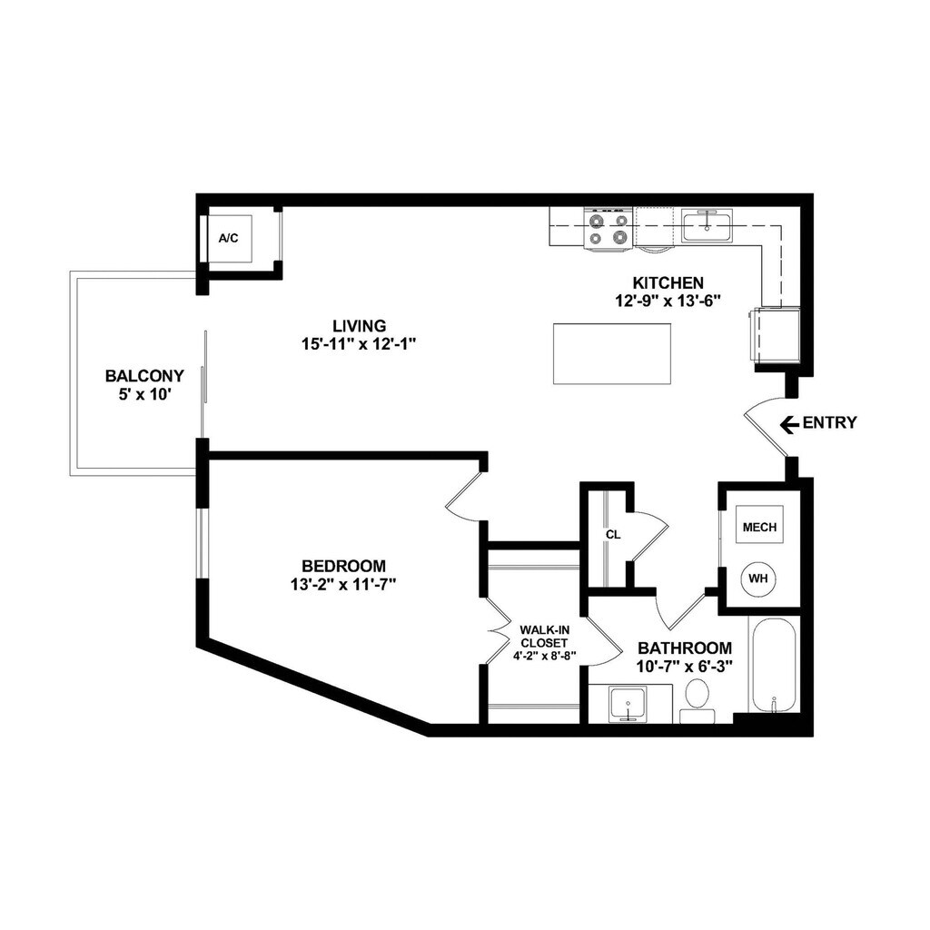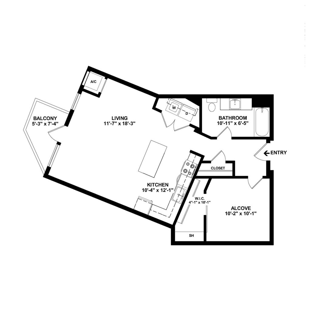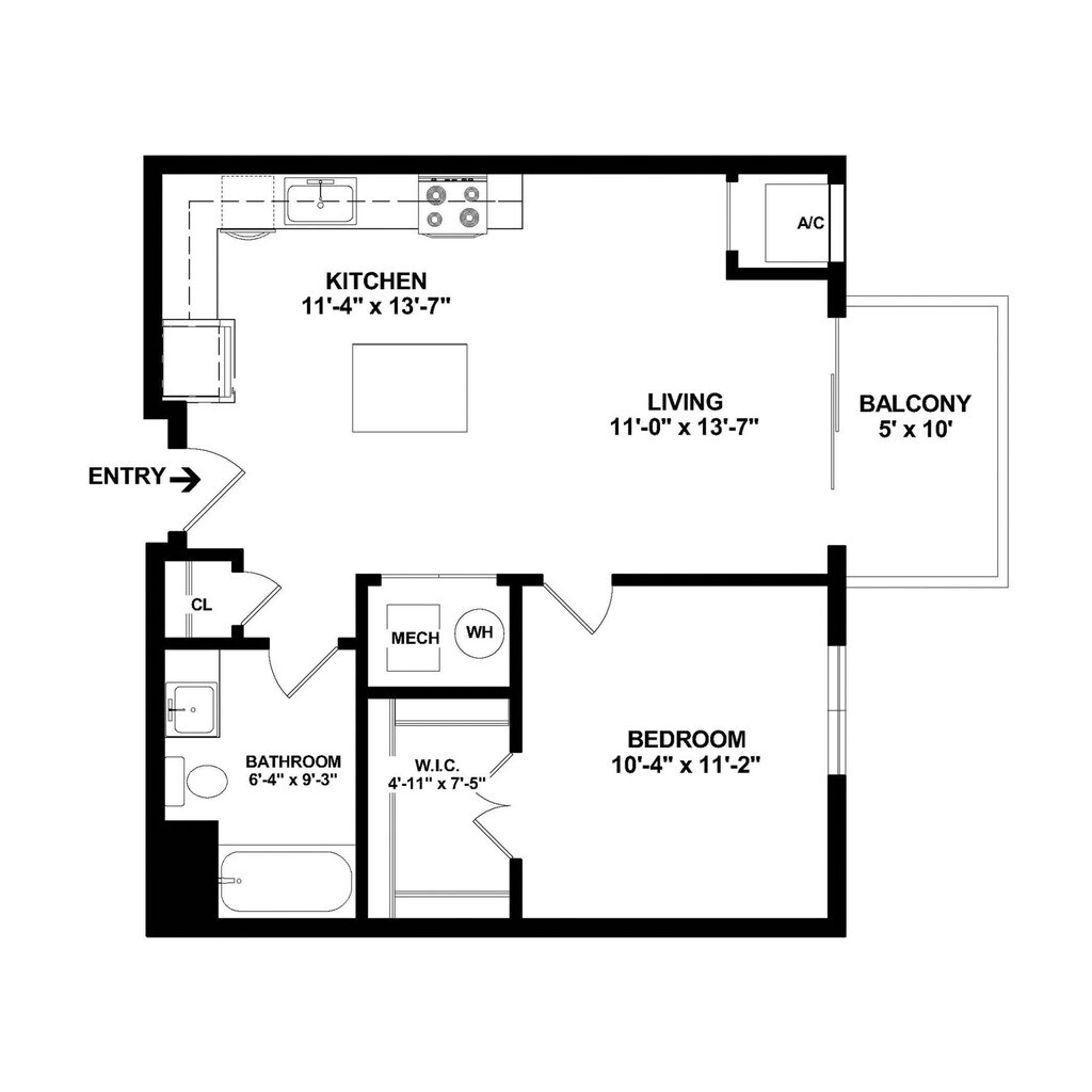 B4 - Floorplan 3 Apartment Unit: 503Apartment Model: B4$2,3941 Bedroom, 1 Bath, 735 sq ftAvailable NowFloorplan B5