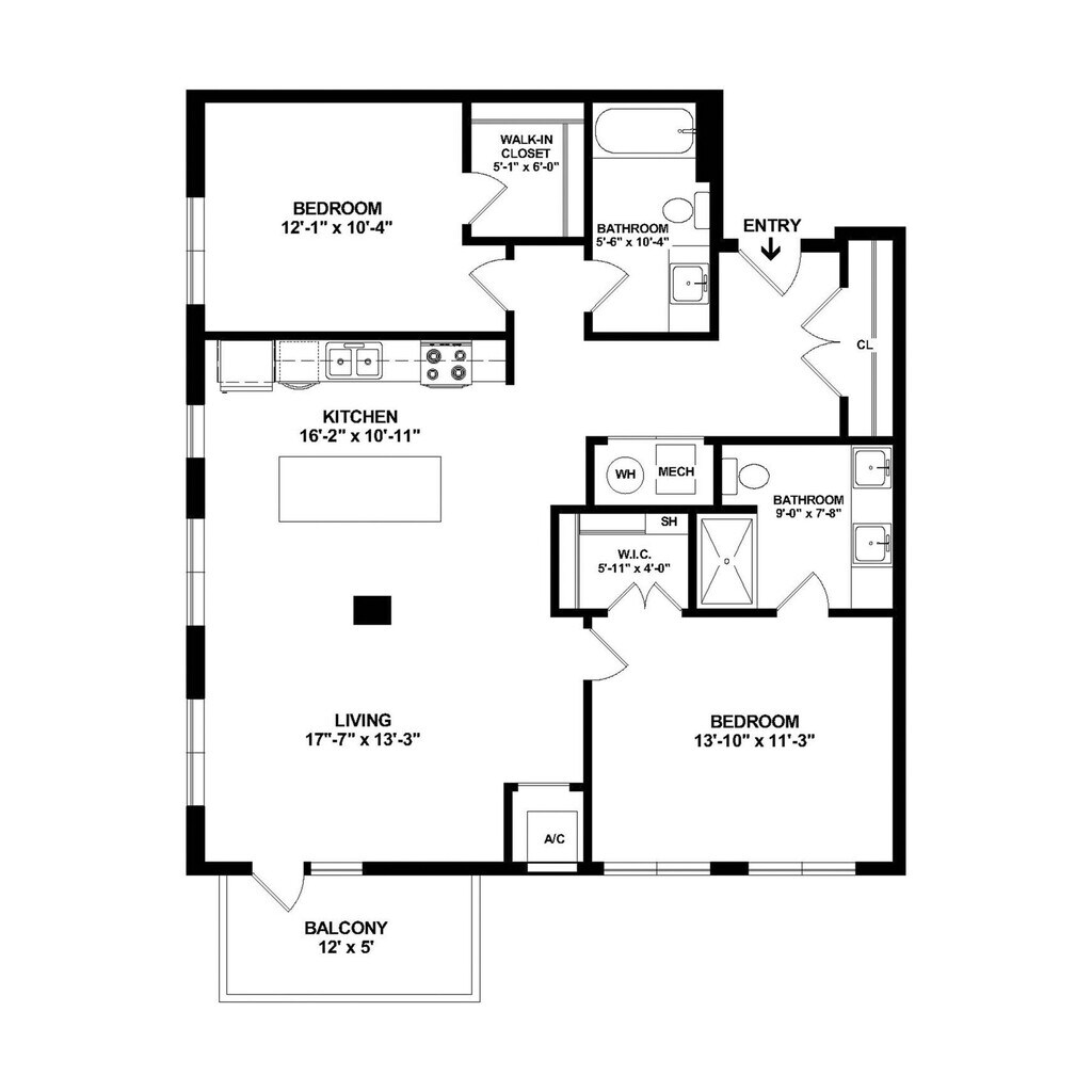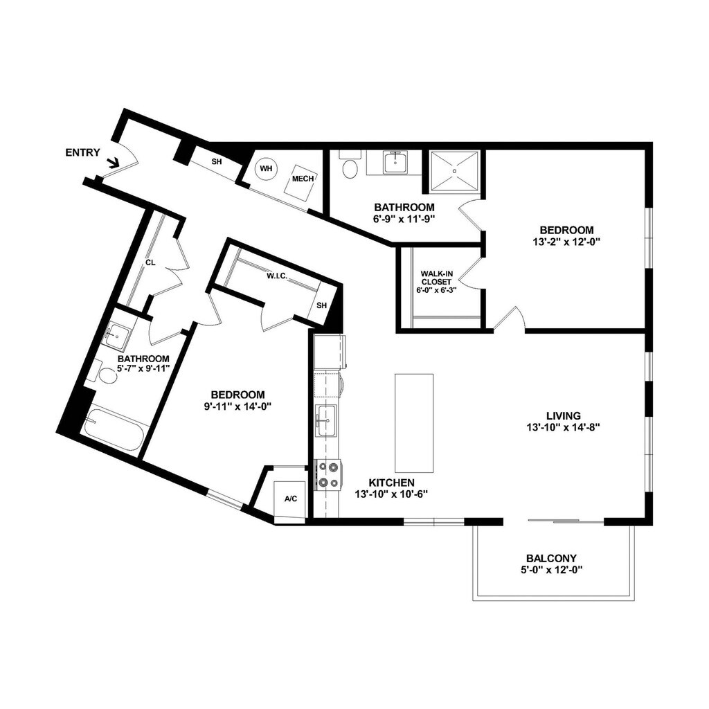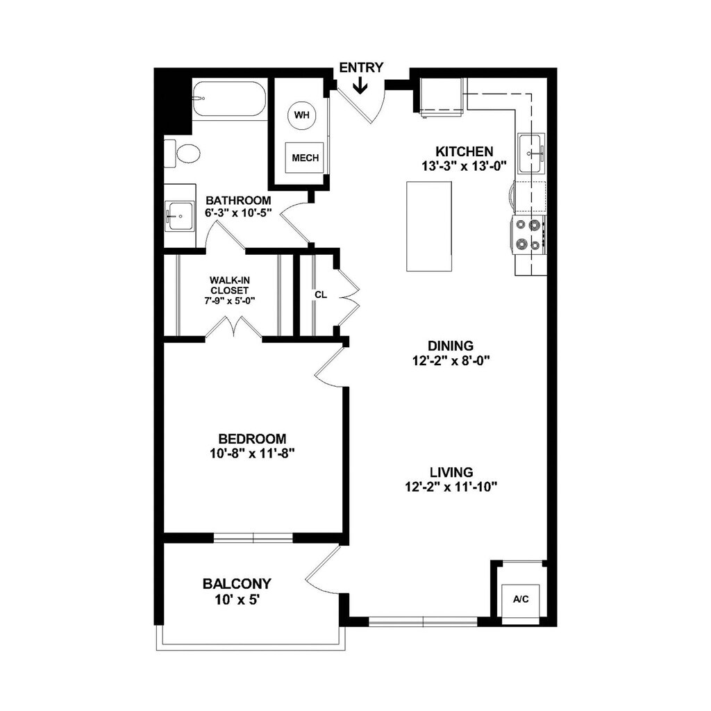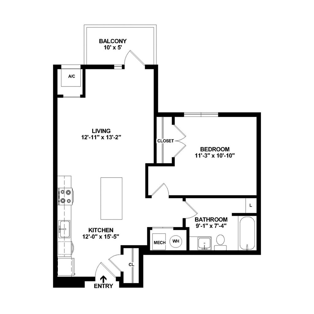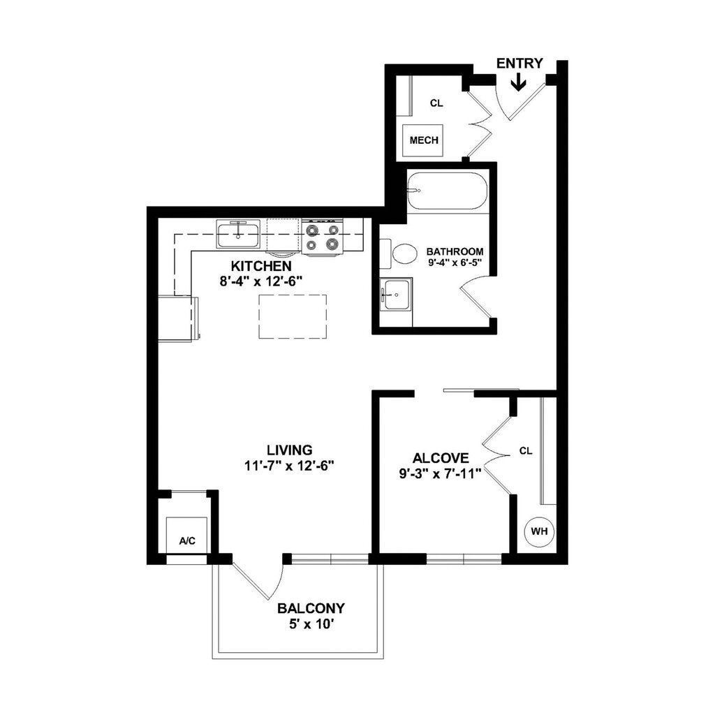 B4 - Floorplan 3 Apartment Unit: 503Apartment Model: B4$2,3941 Bedroom, 1 Bath, 735 sq ftAvailable NowFloorplan B5