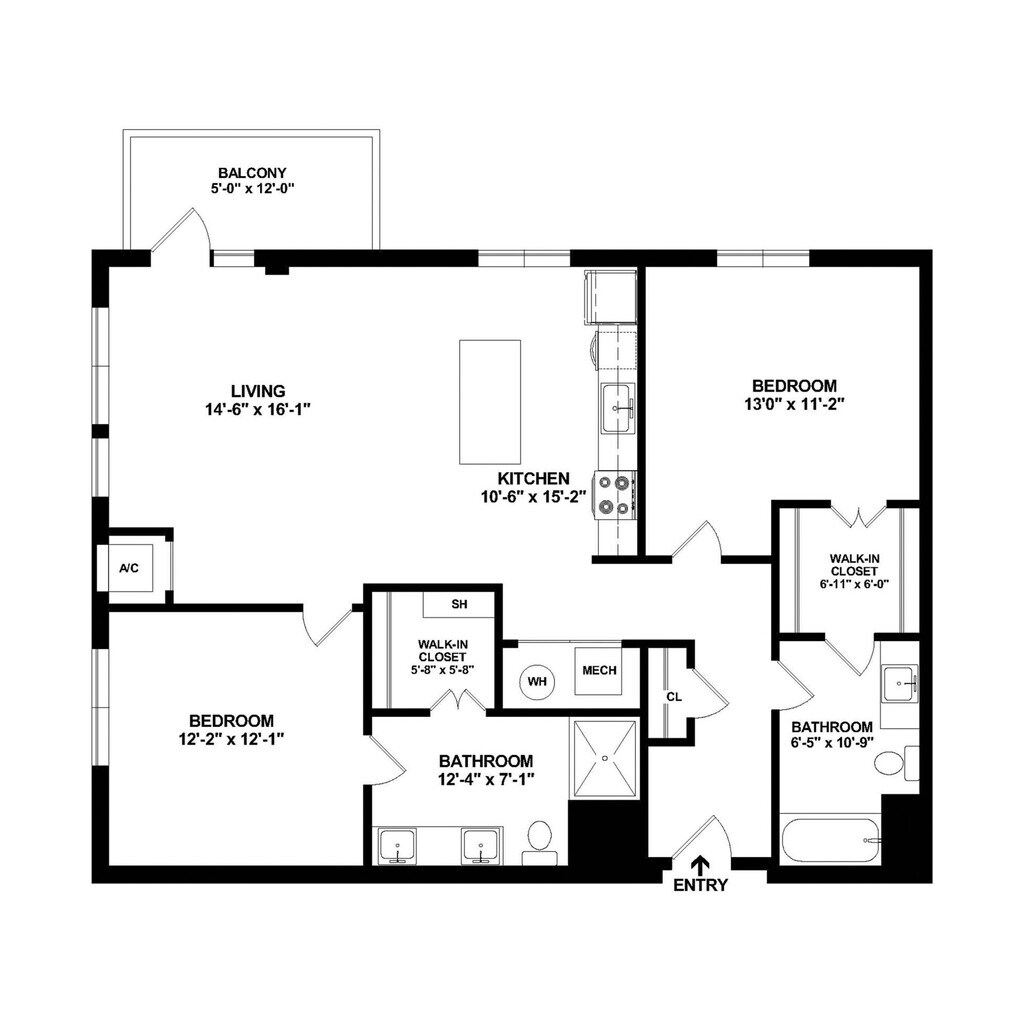 1 Bed, 1 Bath, 755 sq ftAvailable NowModel Gallery
