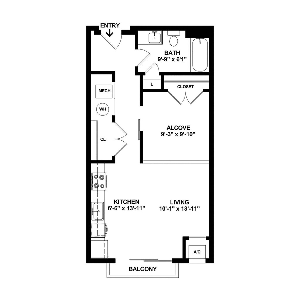 Studio, 1 Bath, 593 sq ftModel Gallery