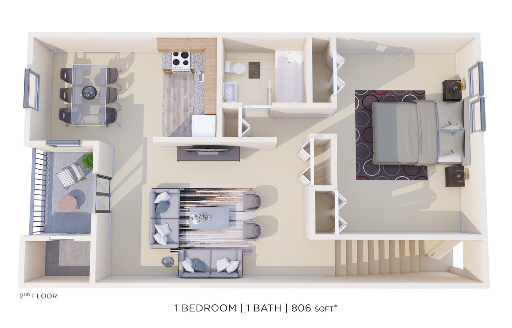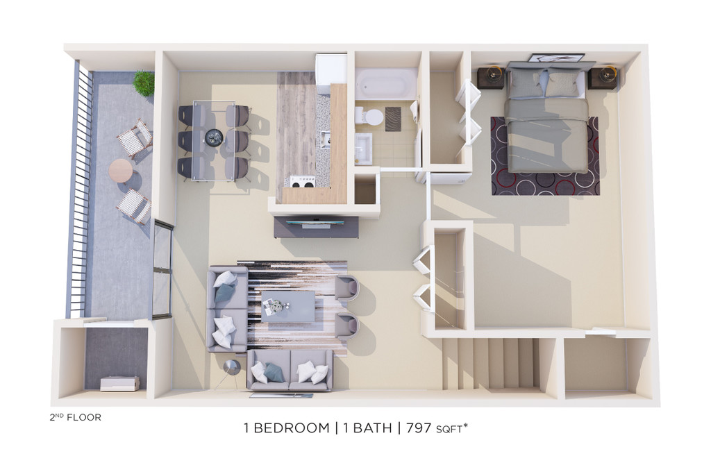 1 Bed, 1 Bath, 797-806 sq ftAvailable NowModel Gallery