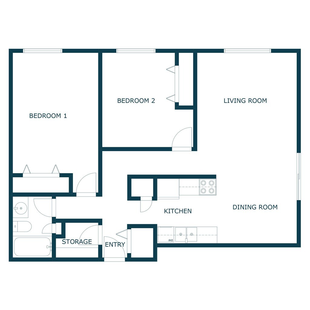 2 Beds, 1 Bath, 1125 sq ftLargest 2 BedroomThis is the largest 2 Bedroom at this PropertyModel Gallery