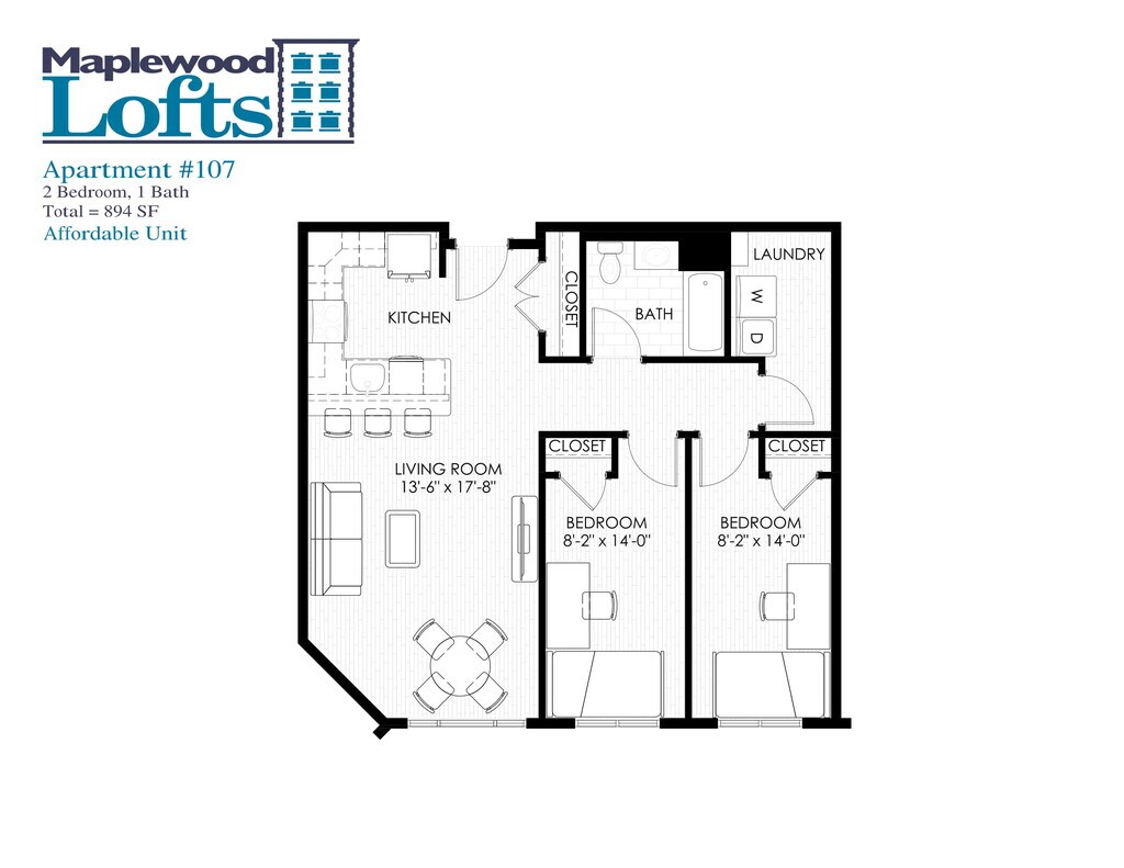 2 Bedroom 1 Bath - Floorplan 8 2 Bedroom 2 Bath