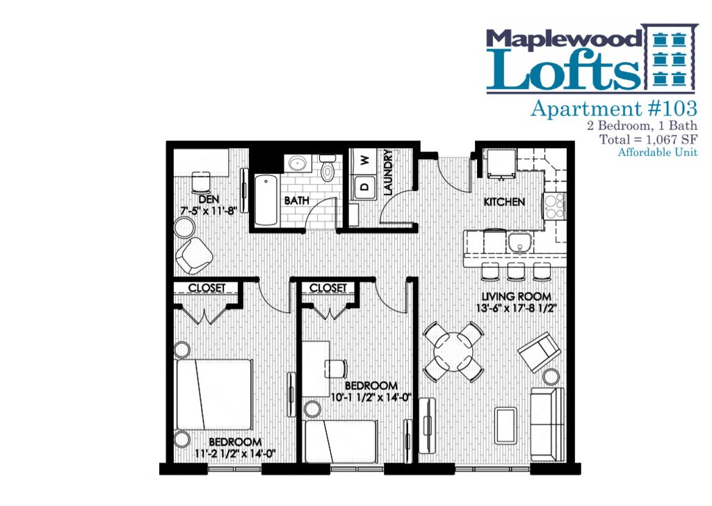 1 Bedroom 1.5 Bath w/ Loft - Floorplan 7 ![]()