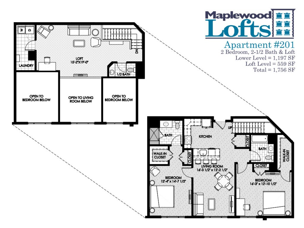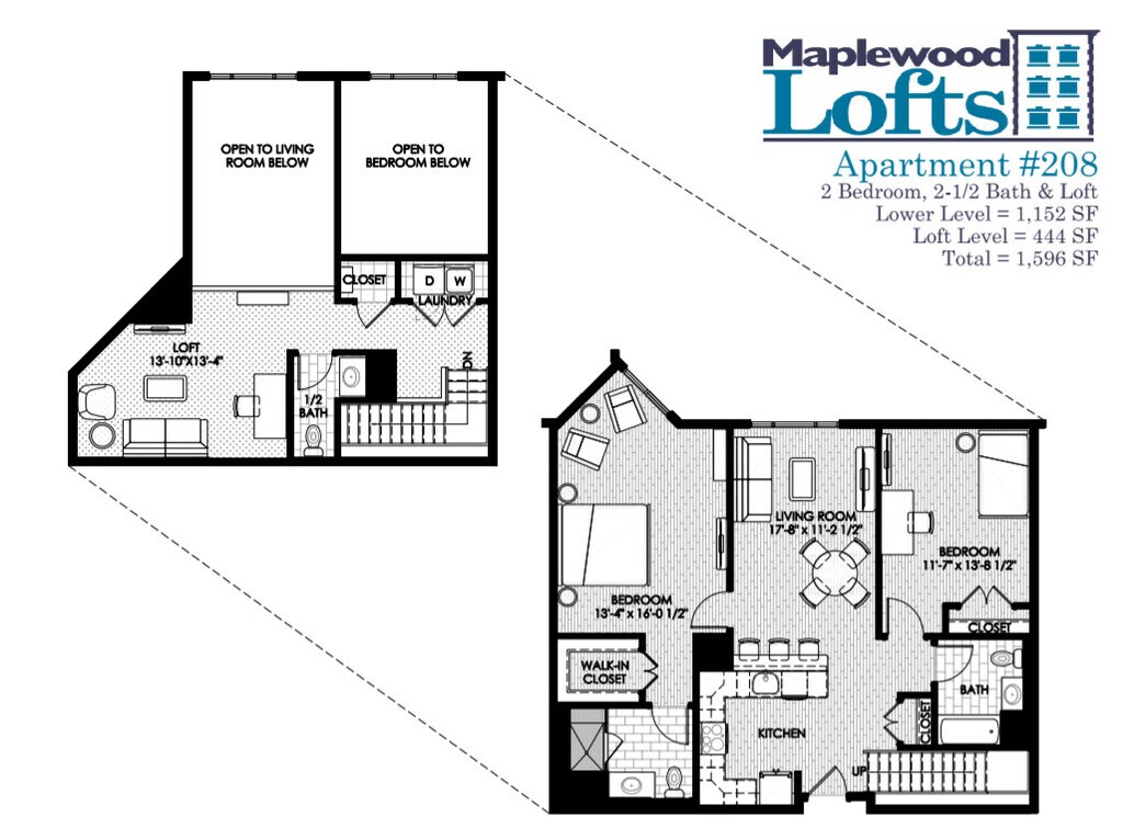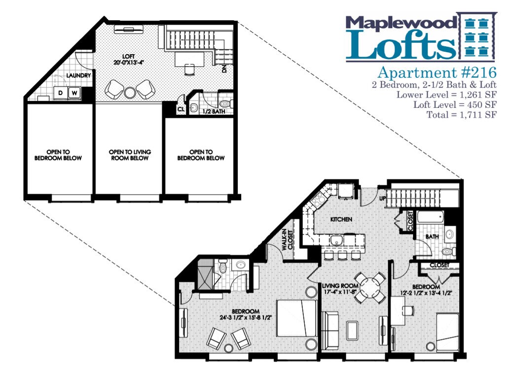 2 Bedroom 2.5 Bath w/ Loft - Floorplan 16 2 Bedroom 1.5 Bath w/ Loft