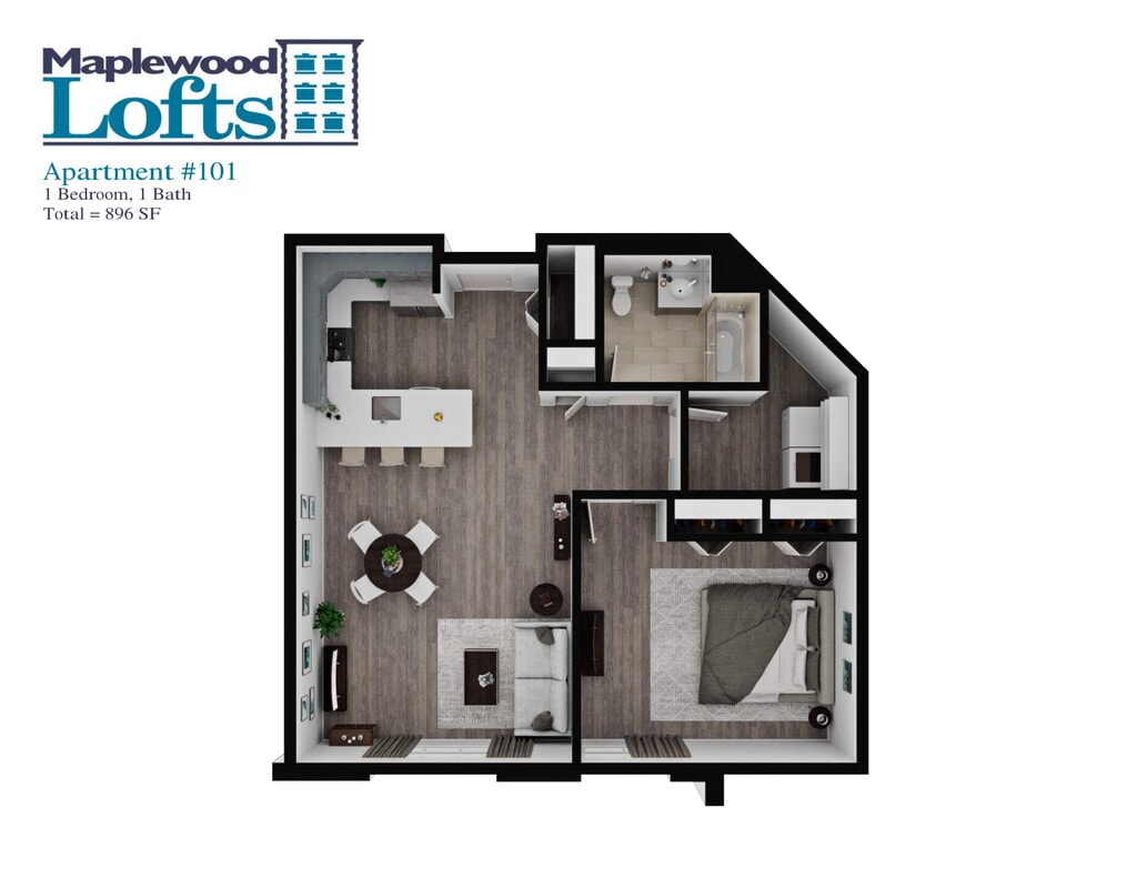1 Bed, 1 Bath, 782-896 sq ftModel Gallery