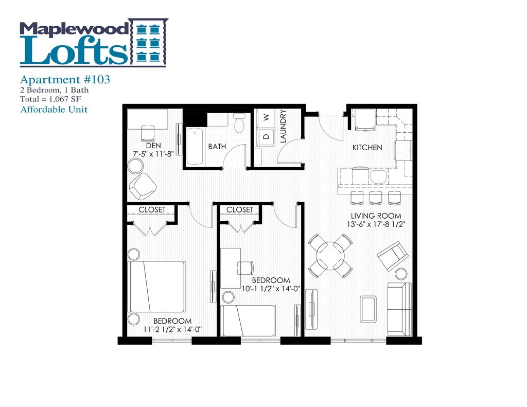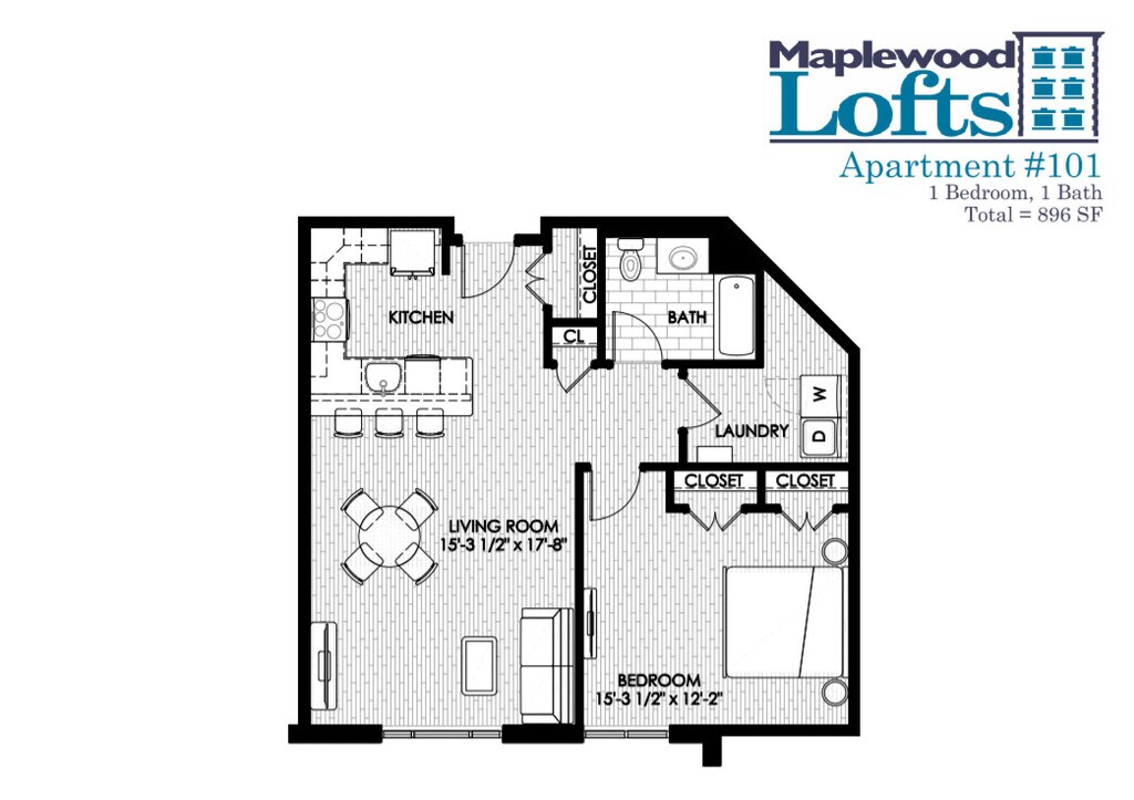 1 Bedroom 1 Bath - Floorplan 15 1 Bedroom 1.5 Bath w/ Loft