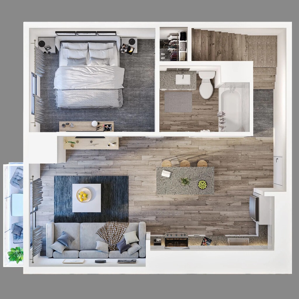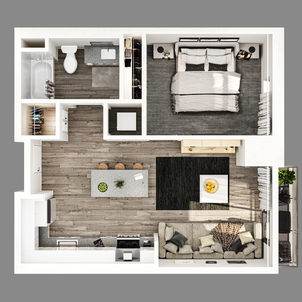 1 Bed, 1 Bath, 611 sq ftModel Gallery