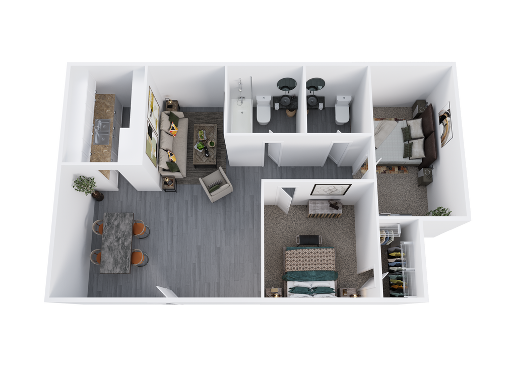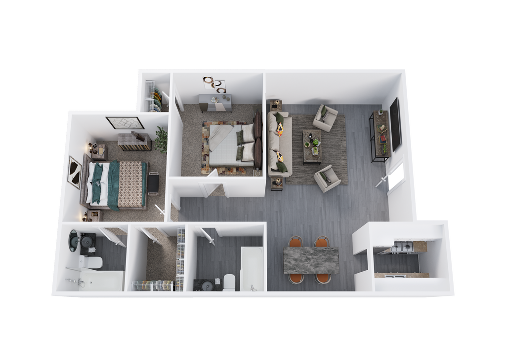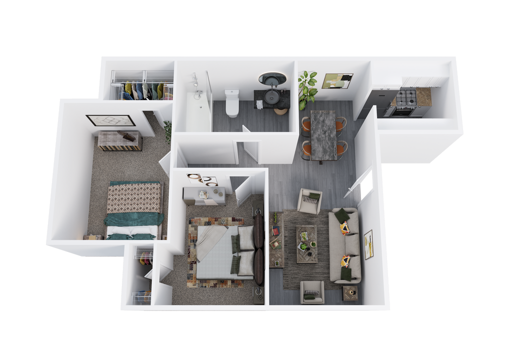 2 Beds, 1 Bath, 844 sq ftAvailable NowModel Gallery