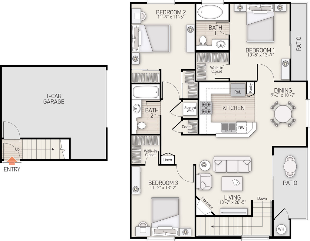 3 Beds, 2 Baths, 1240 sq ftAvailable NowModel Gallery