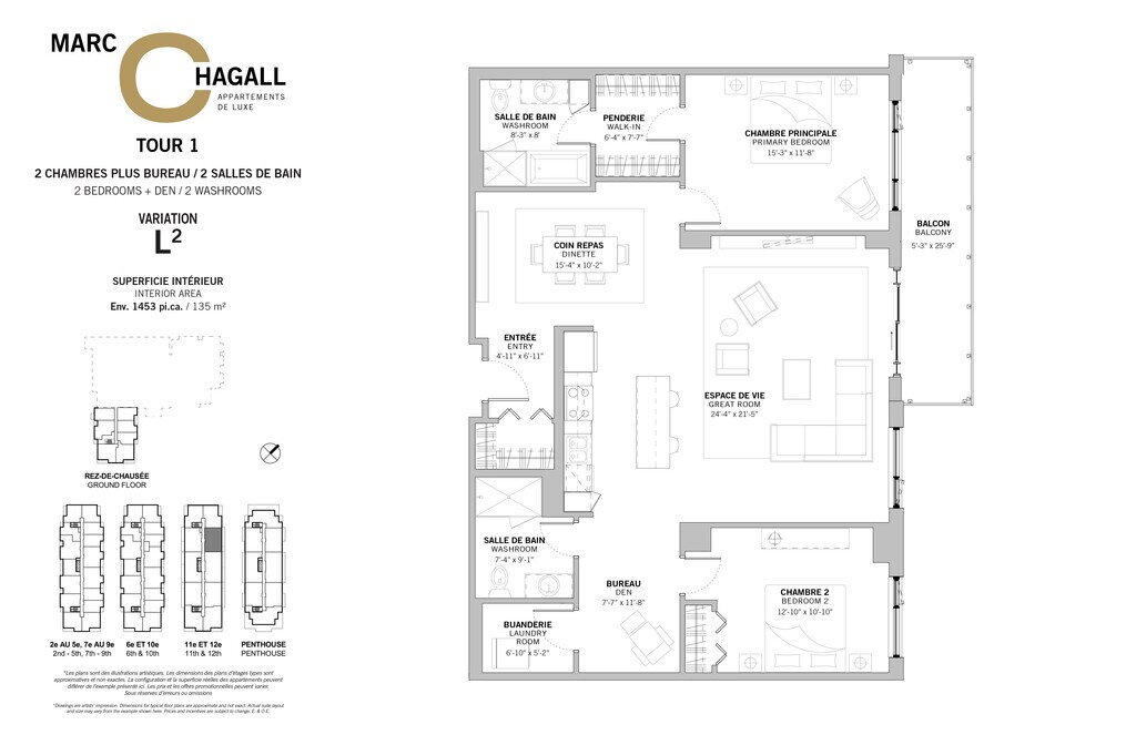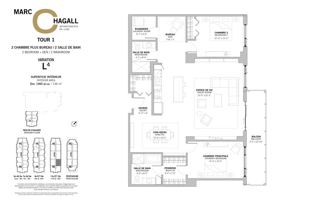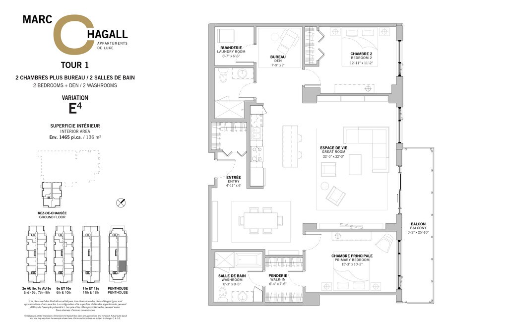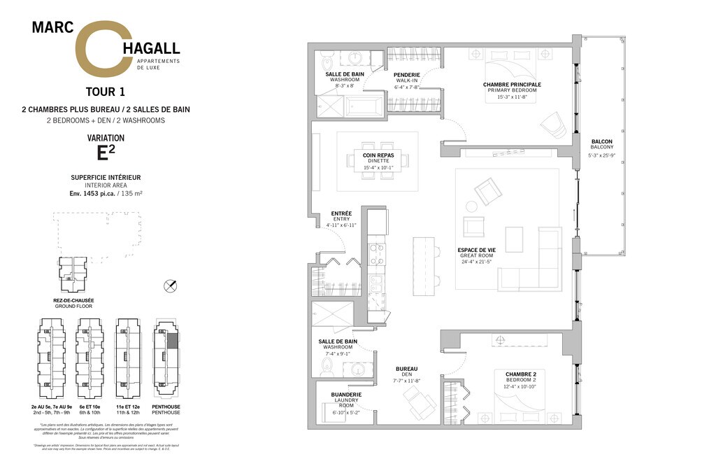 Marc Chagall offers 1 to 2 Bedroom apartments starting from $1,800 and having 680–1,720 sq ft. Here is the current pricing and availability: