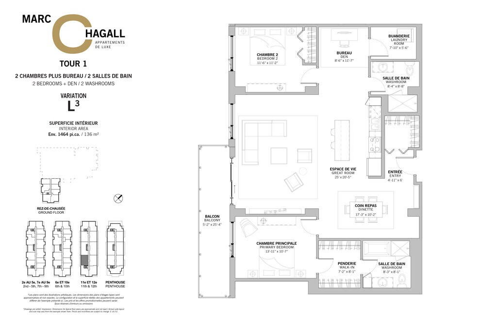 (Tour 1) 3 ½ Plus Bureau E - Floorplan 2 ![]()