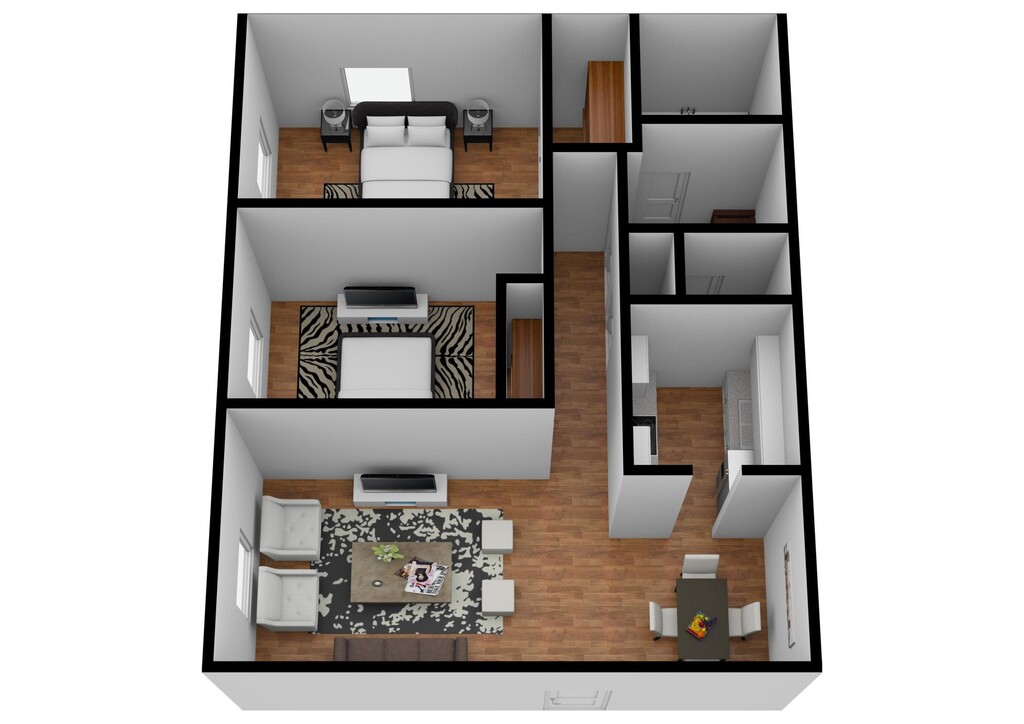 Apartment Model: 2BR 1BA$1,1992 Bedroom, 1 Bath, 1050 sq ftAvailable Now![]() - 2BR 1BA - Floorplan 1