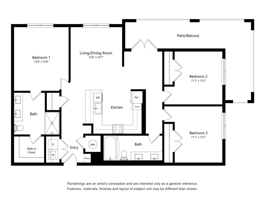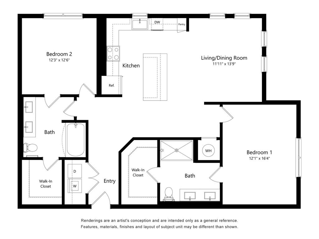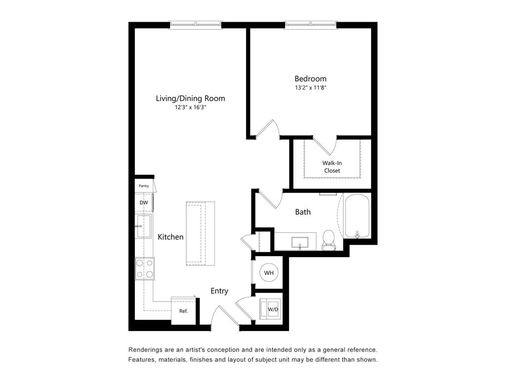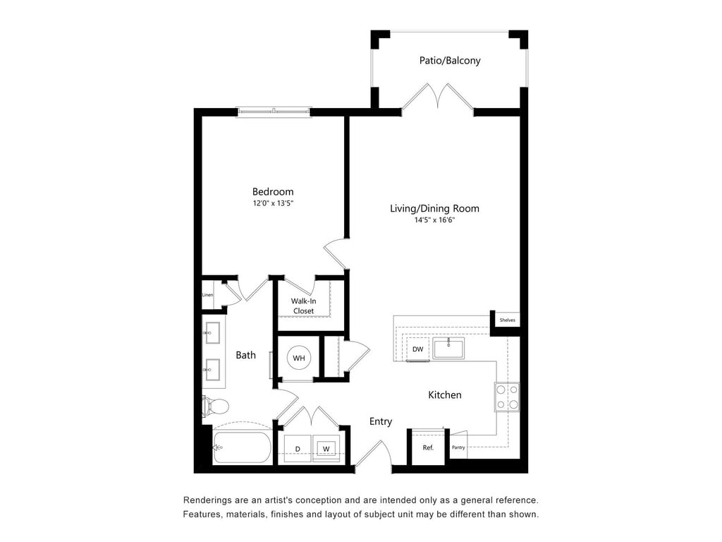 A5 - Floorplan 1 Floor plans are artist's rendering. All dimensions are approximate. Actual product and specifications may vary in dimension or detail. Not all features are available in every rental home. Prices and availability are subject to change. Base rent is based on monthly frequency. Additional fees may apply, such as but not limited to package delivery, trash, water, amenities, etc. Deposits vary. Please see a representative for details.