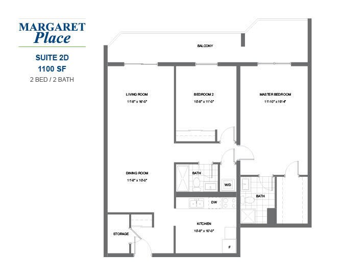 Margaret Place offers 1 to 2 Bedroom apartments starting from C$2,055 and having 750–1,100 sq ft. Here is the current pricing and availability:
