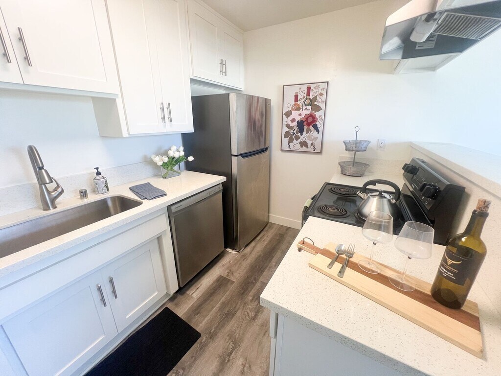 Run, don't walk, to this upgraded unit in the heart of Encino within walking distance to Ventura Blvd. This large spacious unit has been renovated with Wood Vinyl flooring, Stainless Steel appliances, Marble counter tops and upgraded fixtures. The building has a sparkling pool, new gym, large onsite laundry facility, sunny courtyard, gated parking, and a decorated lobby with intercom entry system.