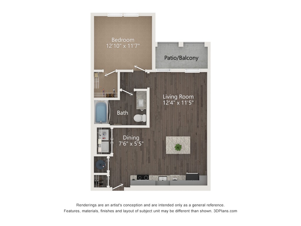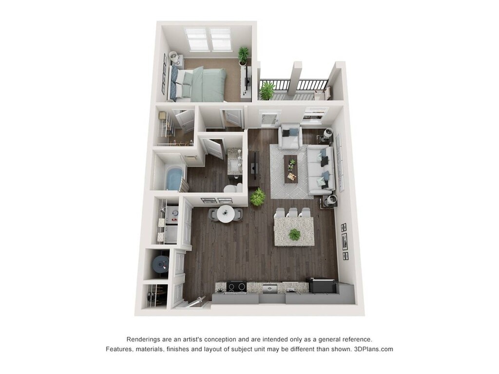 Apartment Model: BloomFrom $1,6191 Bedroom, 1 Bath, 775 sq ftAvailable NowFloor plans are artist's rendering. All dimensions are approximate. Actual product and specifications may vary in dimension or detail. Not all features are available in every rental home. Prices and availability are subject to change. Base rent is based on monthly frequency. Additional fees may apply, such as but not limited to package delivery, trash, water, amenities, etc. Deposits vary. Please see a representative for details.