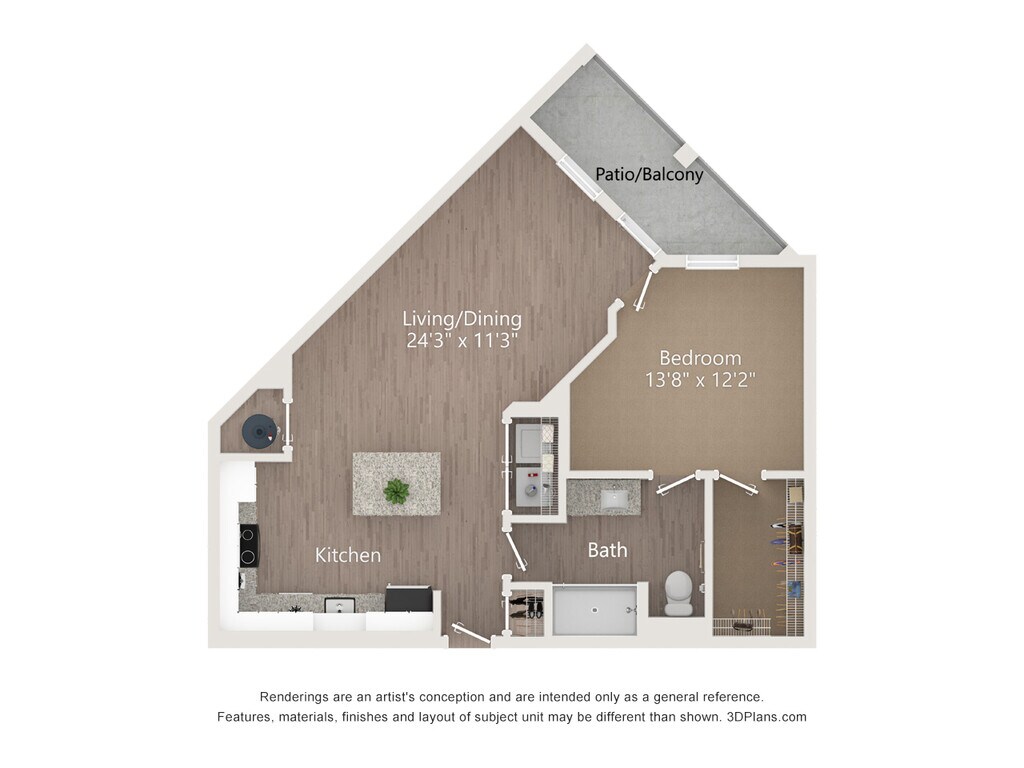 Apartment Model: HarmonyFrom $1,4401 Bedroom, 1 Bath, 746 sq ftAvailable NowFloor plans are artist's rendering. All dimensions are approximate. Actual product and specifications may vary in dimension or detail. Not all features are available in every rental home. Prices and availability are subject to change. Base rent is based on monthly frequency. Additional fees may apply, such as but not limited to package delivery, trash, water, amenities, etc. Deposits vary. Please see a representative for details.