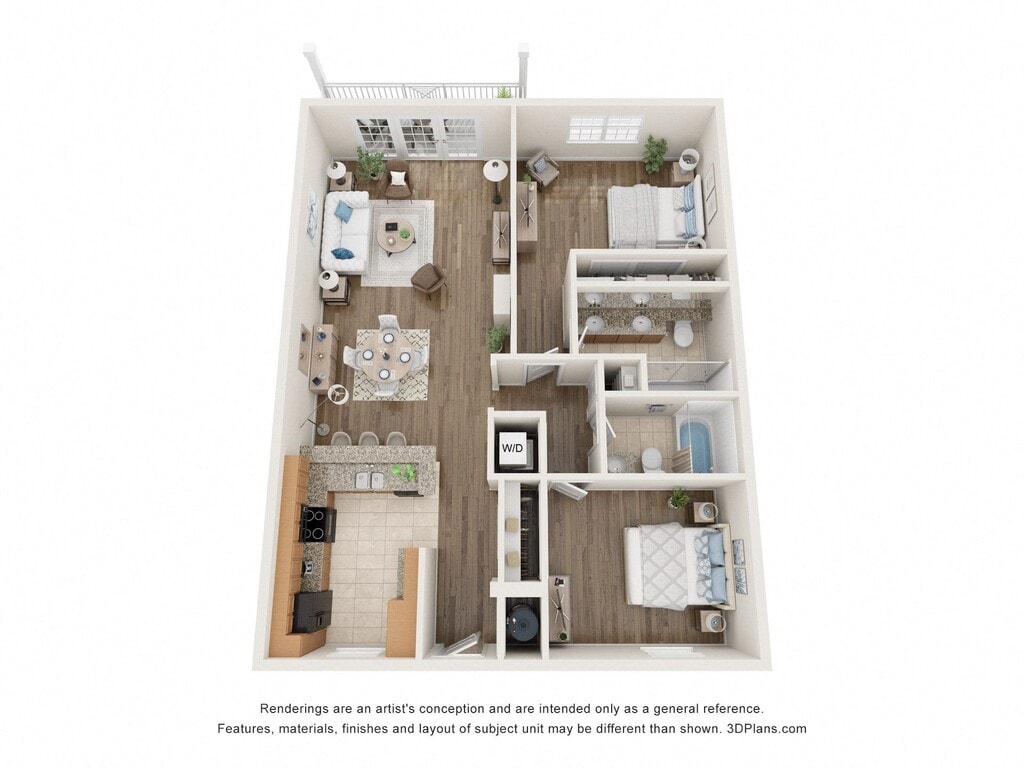 Apartment Model: A2-The DuvalCall For Rates1 Bedroom, 1.5 Bath, 1015 sq ftUnavailableFloor plans are artist's rendering. All dimensions are approximate. Actual product and specifications may vary in dimension or detail. Not all features are available in every rental home. Please see a representative for details.