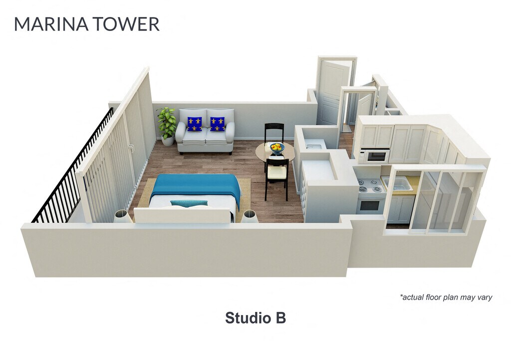 Marina Tower offers Studio apartments starting from $1,995 and having 450 sq ft. Here is the current pricing and availability: