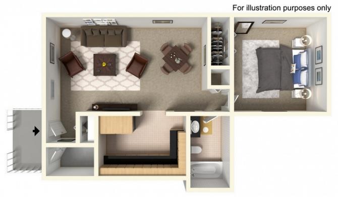 1 Bed, 1 Bath, 705 sq ftModel Gallery