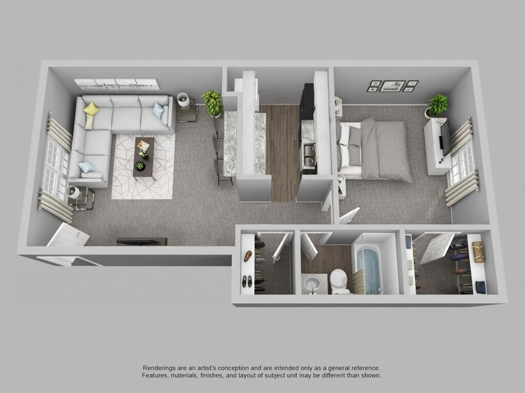 1 Bed 1 Bath - Floorplan 1 1 Bed 1 Bath with Washer/Dryer