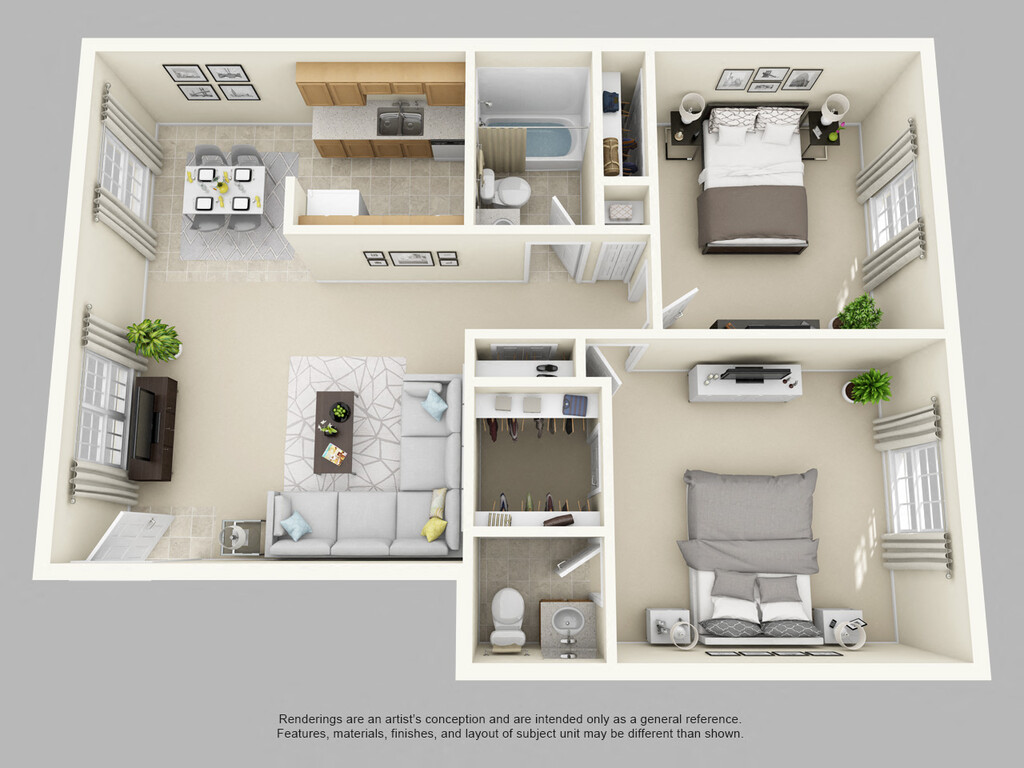 2 Beds, 1.5 Baths, 936 sq ftModel Gallery
