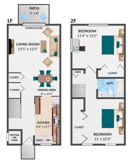2 Beds, 1 Bath, 850 sq ftAvailable NowModel Gallery