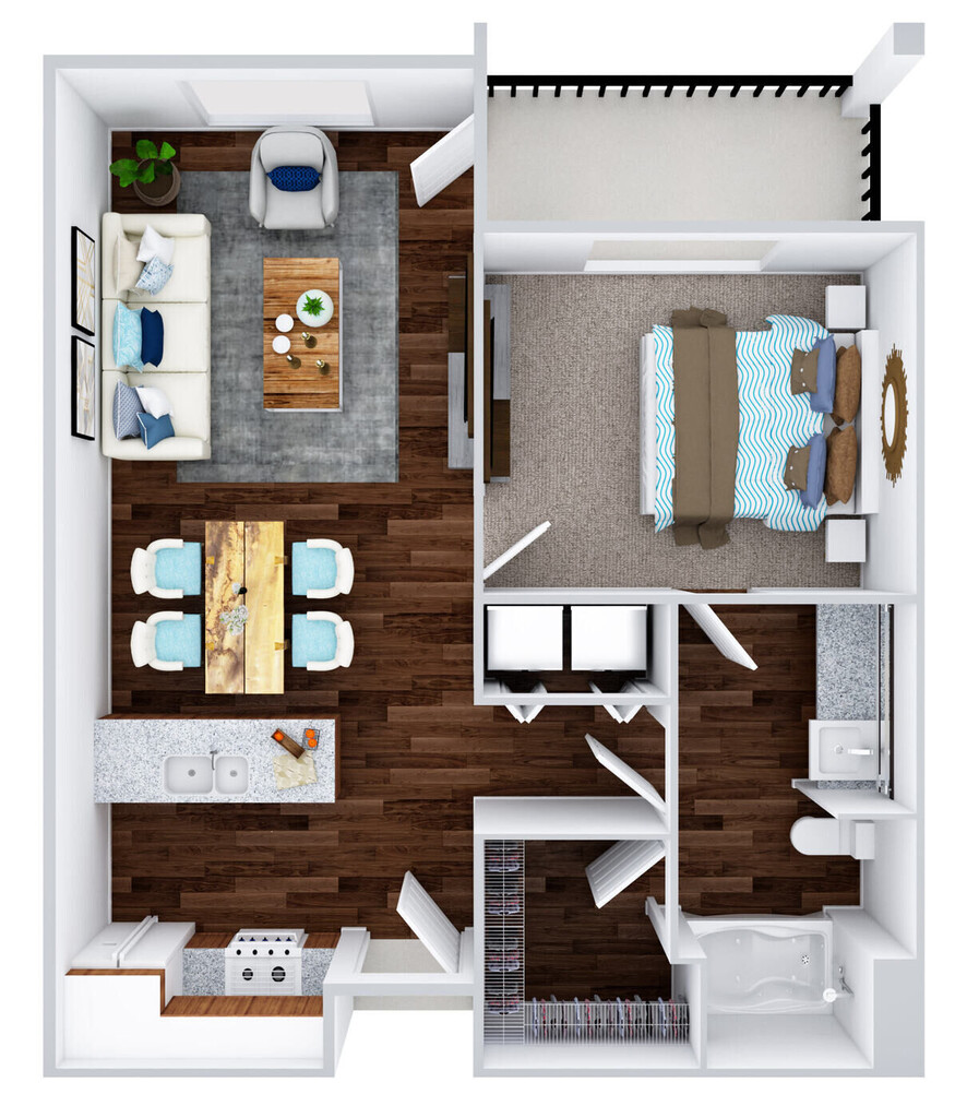 1 Bed, 1 Bath, 709 sq ftAvailable NowModel Gallery