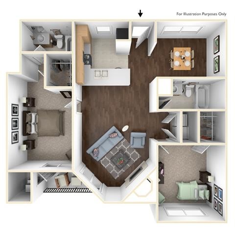 1 Bed, 1 Bath, 893 sq ftAvailable NowLargest 1 BedroomThis is the largest 1 Bedroom at this PropertyModel Gallery
