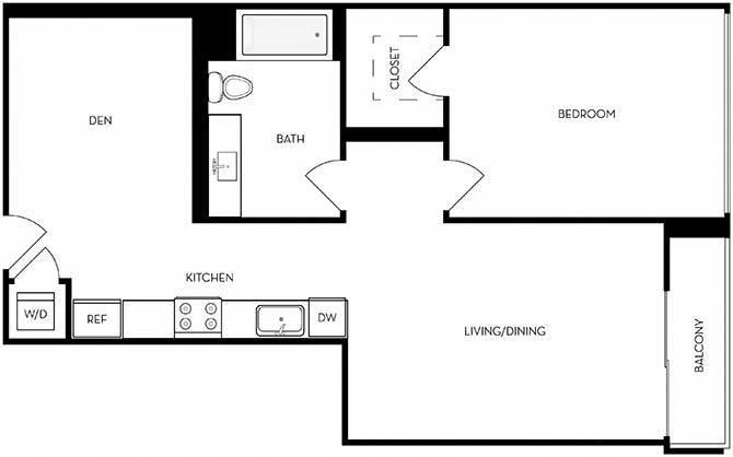 A8 with Den - Floorplan 1 Apartment Unit: 611Apartment Model: A8 with Den1 Bedroom, 1 Bath, 830 sq ftAvailable November 21, 2025Floorplan A1