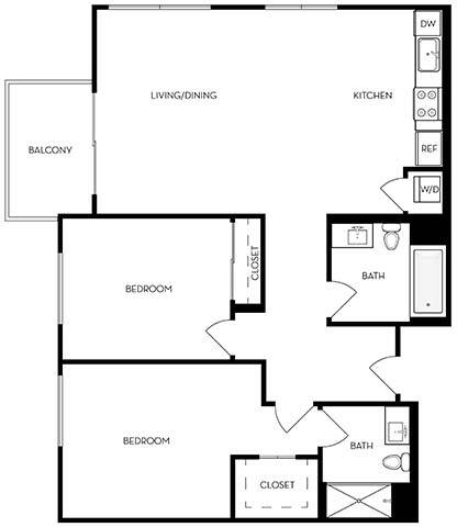 2 Beds, 2 Baths, 1390 sq ftLargest 2 BedroomThis is the largest 2 Bedroom at this PropertyModel Gallery