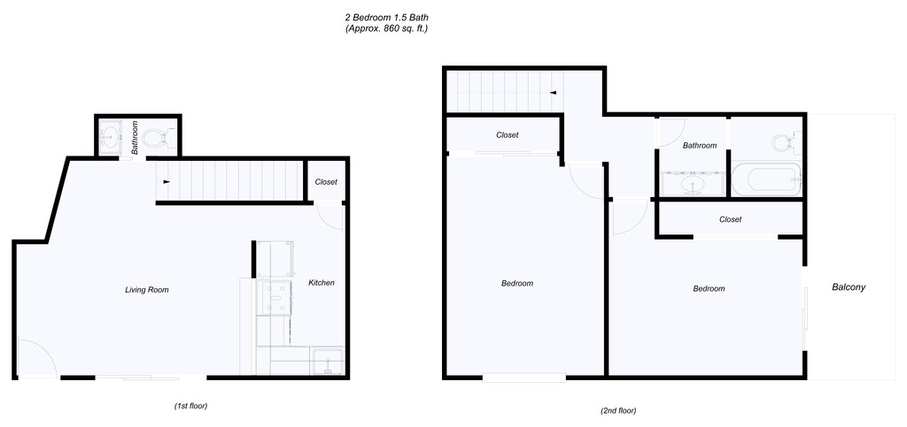 2-Bedrooms, 1.5-Bathroom - Floorplan 1 2-Bedrooms. 2-Bathrooms