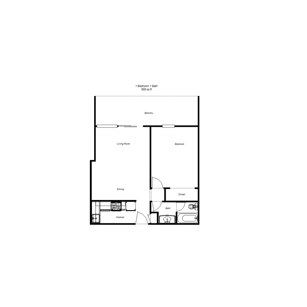 1-Bedroom, 1-Bathroom - Floorplan 1 Apartment Unit: 15Apartment Model: 1-Bedroom, 1-Bathroom1 Bedroom, 1 Bath, 588 sq ftAvailable Now2 Bedrooms