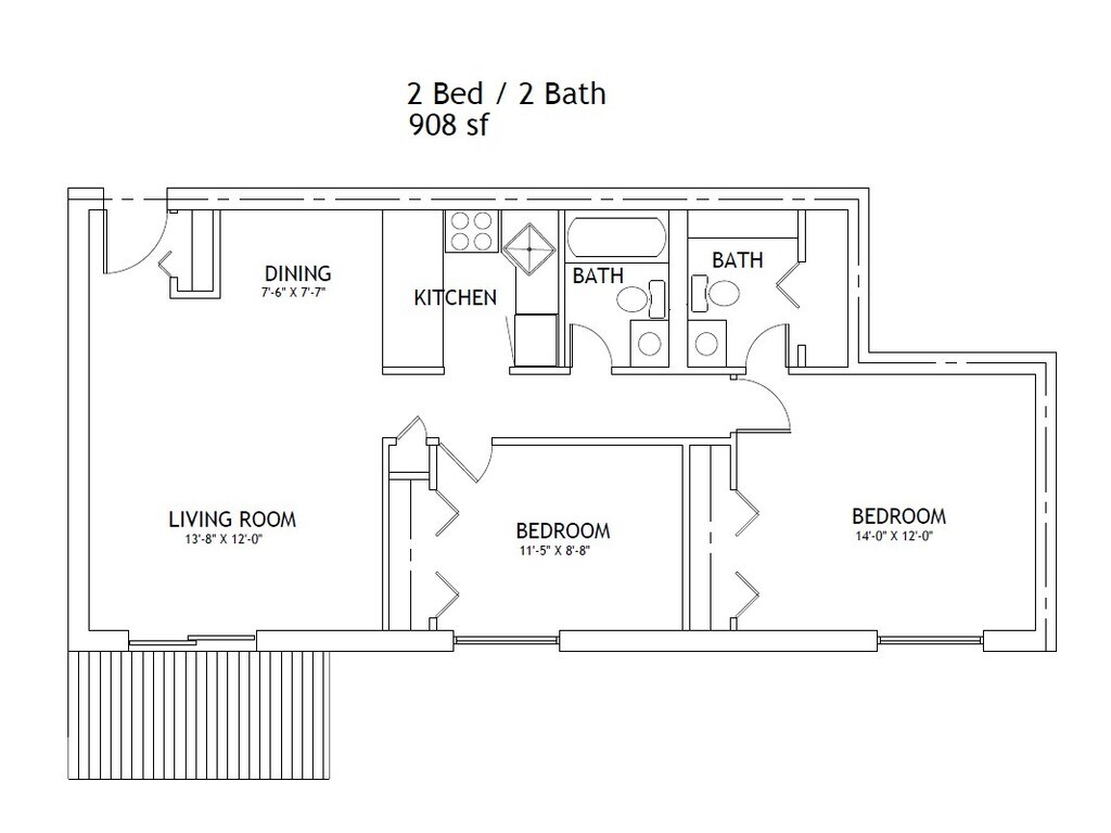 Apartment Model: 2 Bed, 2 BathFrom $1,2952 Bedroom, 2 Bath, 908 sq ftAvailable Now2 Bed, 2 Bath - Floorplan 1