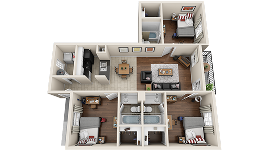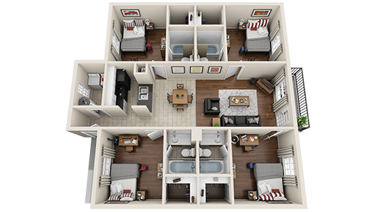 Apartment Model: 4x4 PremiumFrom $5254 Bedroom, 4 Bath, 1230 sq ftAvailable Now![]()