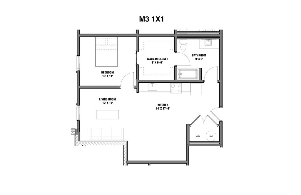 M1 1x1 - Floorplan 1 M3 1x1