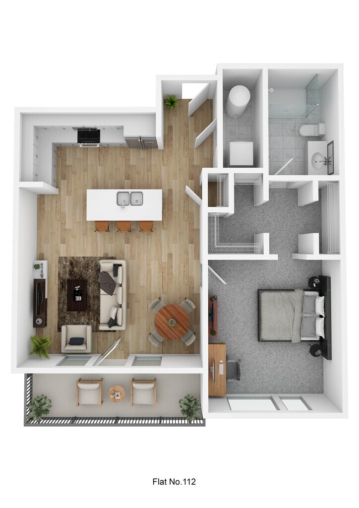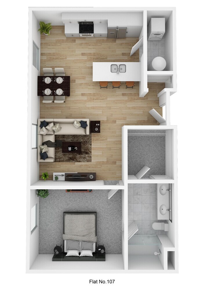 Flat No. 106 - Floorplan 1 Apartment Unit: E-200-312Apartment Model: Flat No. 106From $1,9971 Bedroom, 1 Bath, 772 sq ftAvailable NowFlat No. 108