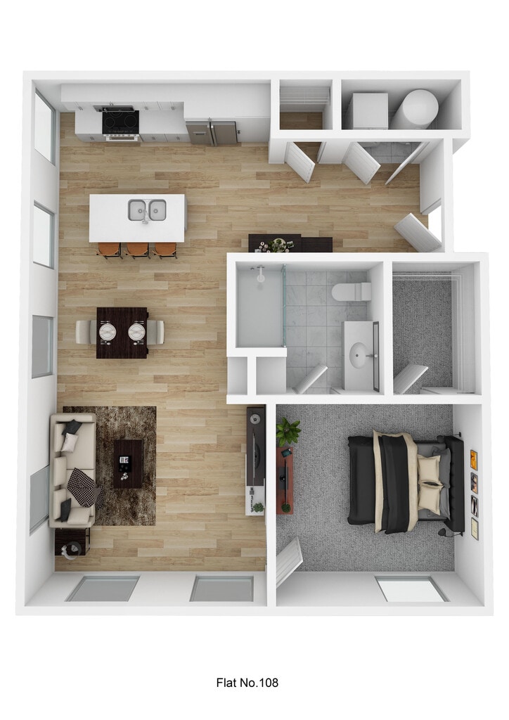 Flat No. 108 - Floorplan 1 Apartment Unit: A-195-202Apartment Model: Flat No. 108From $2,0171 Bedroom, 1 Bath, 794 sq ftAvailable NowFlat No. 101A