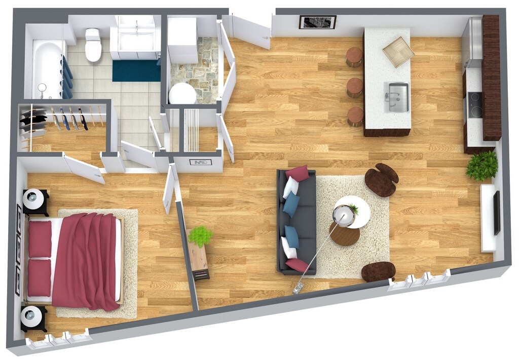 1 Bed, 1 Bath, 534-553 sq ftModel Gallery