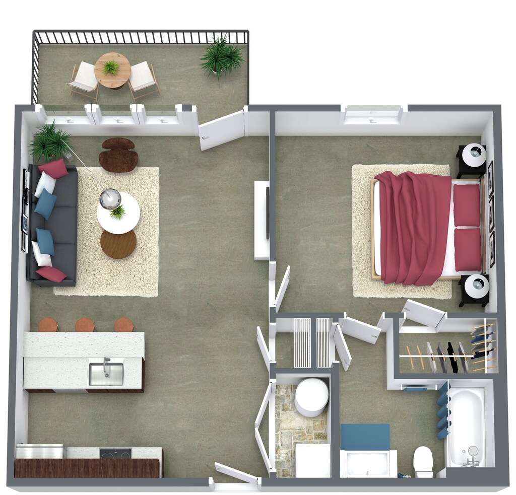 1 Bed, 1 Bath, 516 sq ftModel Gallery